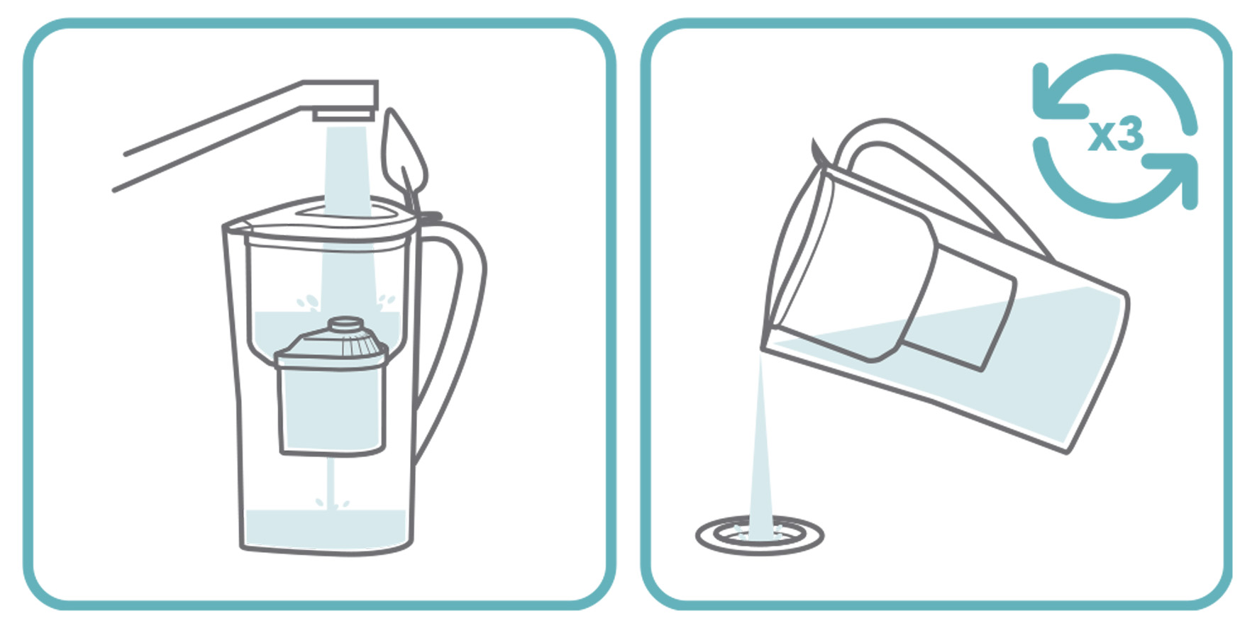 Pon el depósito debajo del grifo de tu fregadero y llénalo totalmente de agua (puedes darle unos golpecitos suaves con la mano a la parte donde está el filtro para agilizar el proceso de activación). Deja que el agua del depósito se filtre y este se vacíe. Vuelve a rellenarlo dos veces más y deja que el agua se filtre.