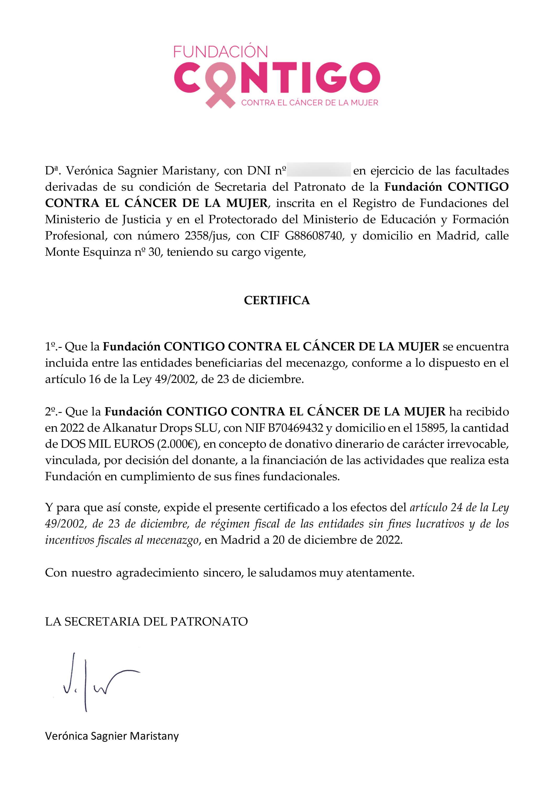 La Fundación Contigo contra el Cáncer de la Mujer fue creada por el oncólogo Javier Cortés junto con pacientes comprometidas, con el propósito de impulsar la investigación del cáncer femenino y mejorar la calidad de vida de las mujeres afectadas.